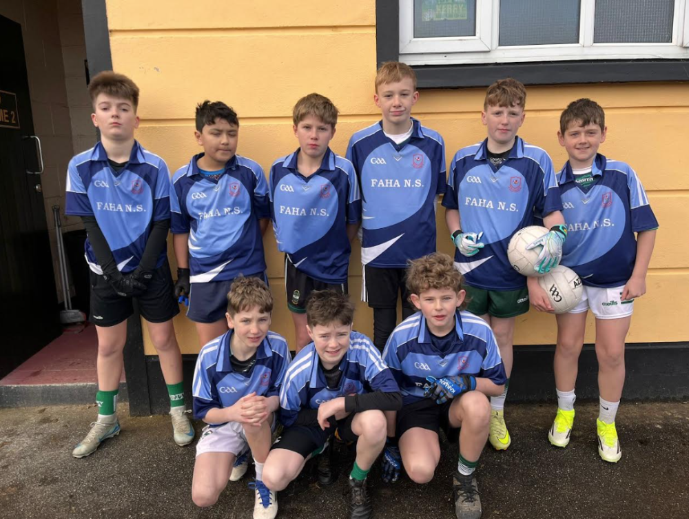 Faha N.S. took part in the Mini 7's Football Competition on Friday with teams made up of both 5th and 6th class pupils. The boy's team played against Lissivigeen, Fossa and The Mon. All matches were highly competitive, and the boys had to dig deep throughout the day. They showed trememdous determination and outstanding team spirit, winning all of their games and topping their group.